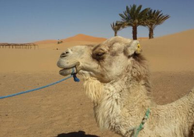 Doch egal mit welchem Flug du landest, unser Fahrer wartet auf dich und die anderen Teilnehmer*innen (bitte informiere uns lediglich mit welchem Inlandsflug du ankommst) und es geht tief in die Wüstenregion hinein bis zur Oase Merzouga (ca. 1,5 – 2 h Fahrt), wo die erste Übernachtung in einer traditionellen Kasbah am Rande der Wüste stattfindet.